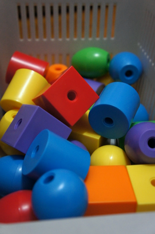 串珠玩具可以訓練小朋友手眼協調 (穿線)、算數,再加上多種形狀和顏色,可以有多種玩法。